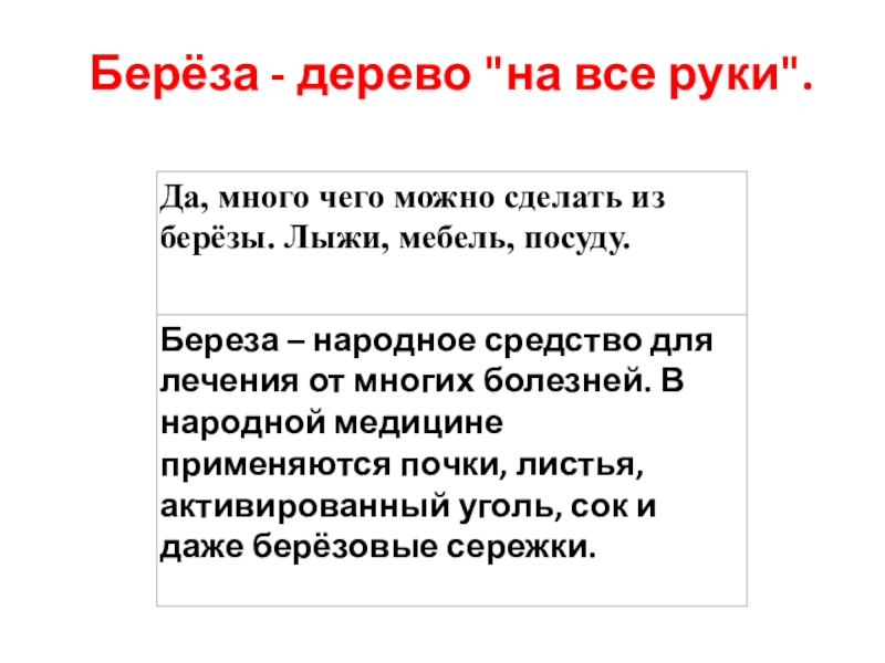 Слайд 10Берёза помогает человеку в трудную минуту.