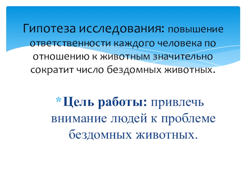 Цель работы: привлечь внимание людей к проблеме бездомных животных.