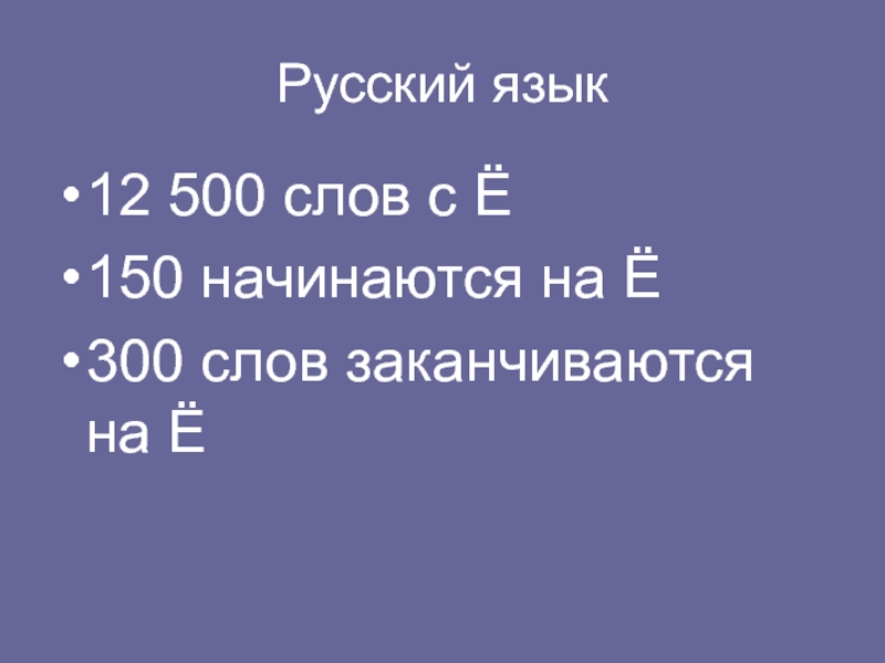 Русский язык12 500 слов с Ё150 начинаются на Ё300 слов заканчиваются на Ё
