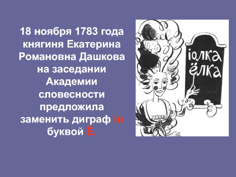 18 ноября 1783 года  княгиня Екатерина Романовна Дашкова  на заседании  Академии словесности предложила заменить