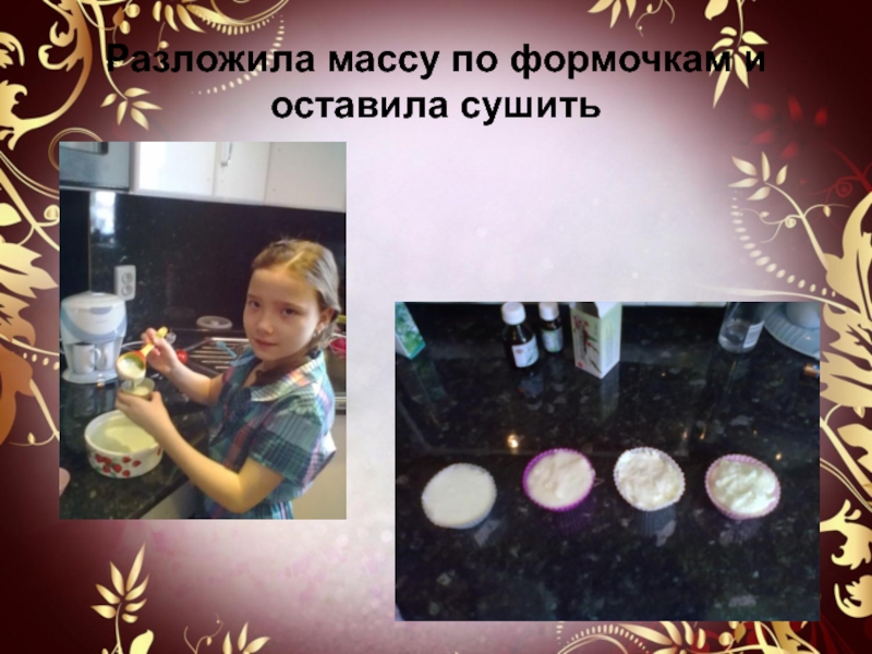 Слайд 22Разложила массу по формочкам и оставила сушить