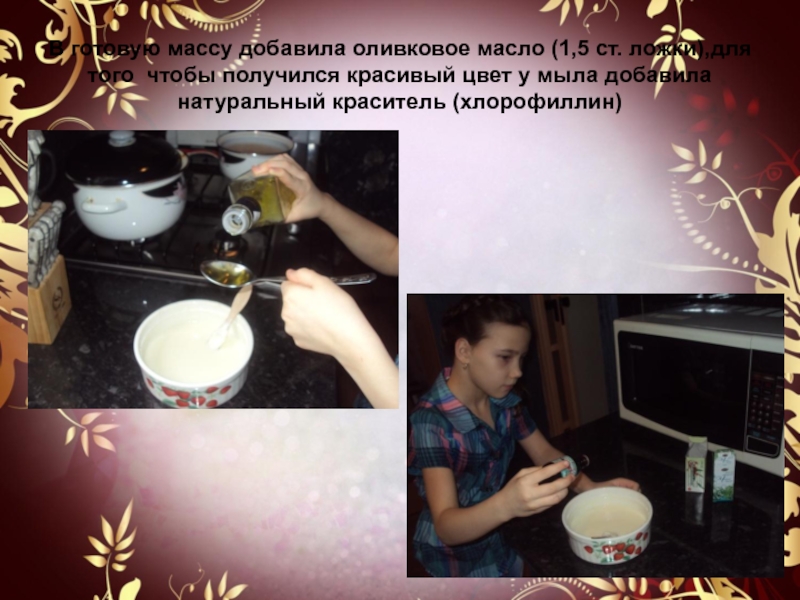 Слайд 20В готовую массу добавила оливковое масло (1,5 ст. ложки),для того чтобы