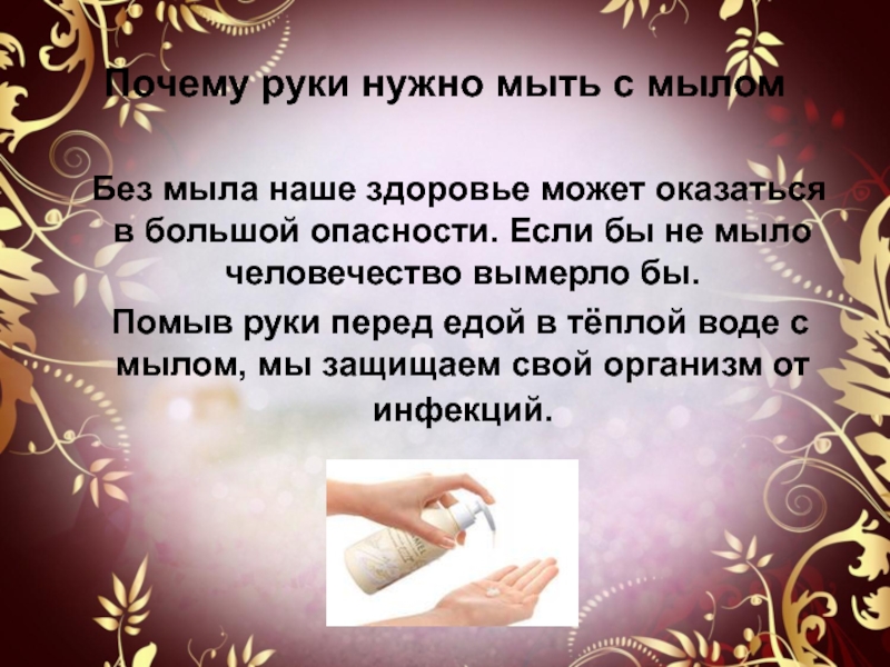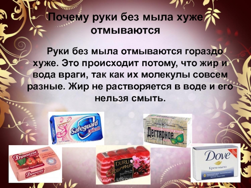 может оказаться в большой опасности. Если бы не мыло человечество вымерло бы.