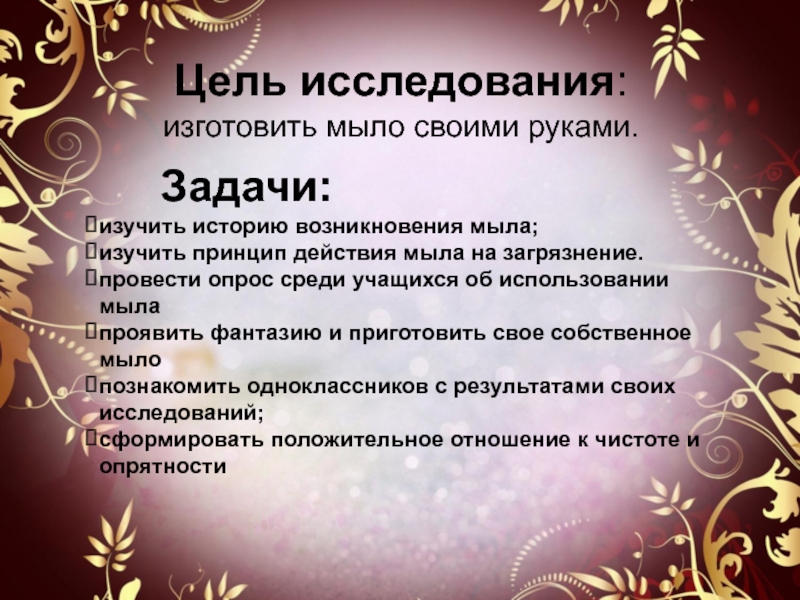 об истории происхождения мыла. Я теперь знаю из чего и как можно сделать мыло в домашних условиях. Наша гипотеза о том, что мыло можно сварить самим подтвердилась. Оказывается, что готовить мыло своими руками очень интересно и совсем не сложно.