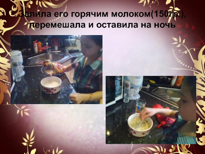 Слайд 17Залила его горячим молоком(150гр.), перемешала и оставила на ночь