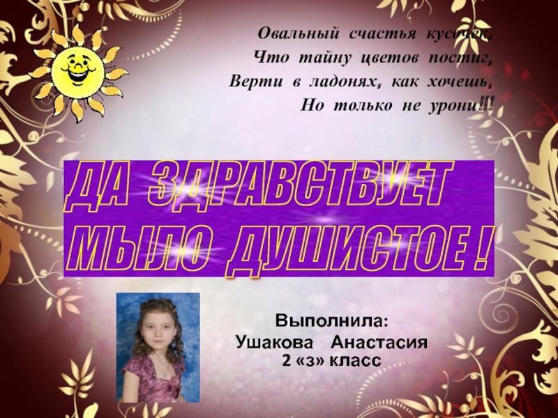 формы, размера, цвета и запаха. Туалетное мыло служит для личной гигиены человека, т.е. для умывания, мытья рук и тела.