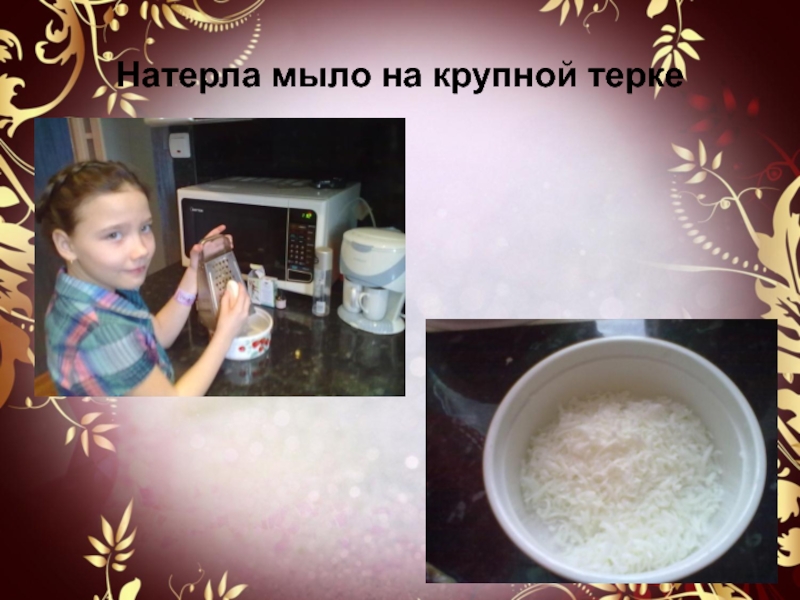 Слайд 18Переплавлять настоянное мыло нужно на водяной бане (чашку с мылом поставила