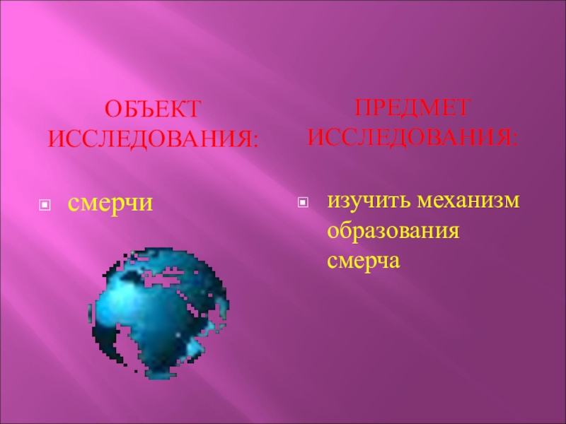 ОБЪЕКТ ИССЛЕДОВАНИЯ:ПРЕДМЕТ ИССЛЕДОВАНИЯ:смерчиизучить механизм образования смерча