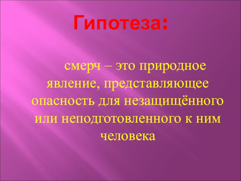 Гипотеза:    смерч – это природное явление, представляющее опасность для незащищённого или неподготовленного к ним