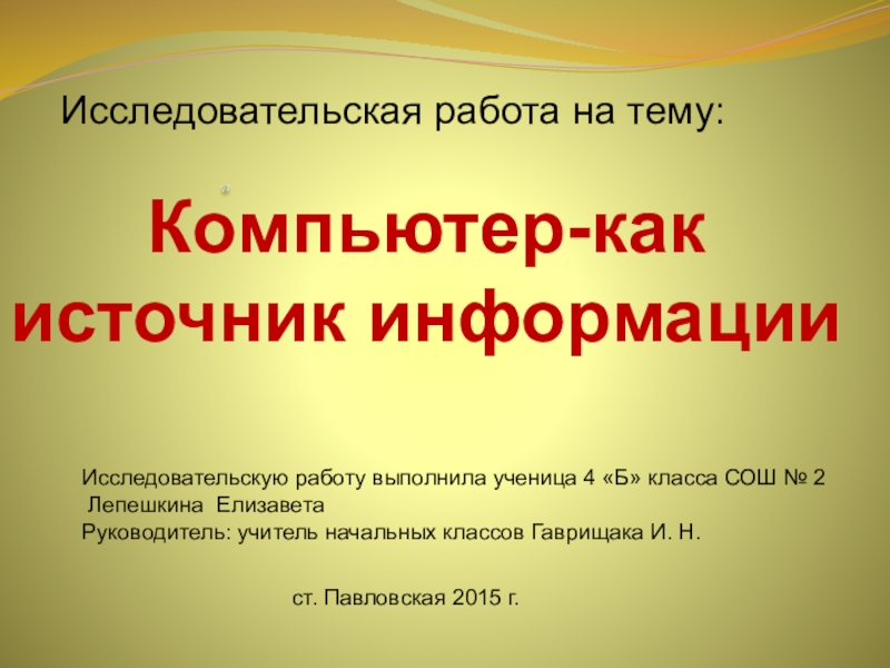 Руководитель: учитель начальных классов Гаврищака И. Н.