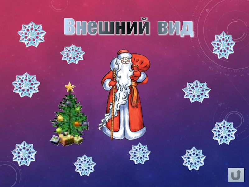 Носит красную или синюю шубу, расшитую серебром (восьмиконечные звезды, кресты и другой традиционный орнамент), отороченную лебединым пухом, валенки (или сапоги) и теплую шапку. Круглая форма шапки традиционна для русских царей.