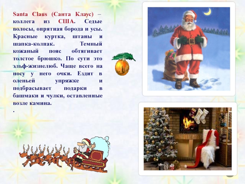 В Испании Деда Мороза зовут Олентцеро, который одет в национальную домотканую одежду и носит с собой фляжку доброго испанского вина.