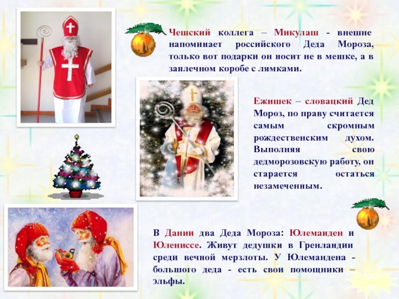 В Дании два Деда Мороза: Юлеманден и Юлениссе. Живут дедушки в Гренландии среди вечной мерзлоты. У Юлемандена - большого деда - есть свои помощники – эльфы.