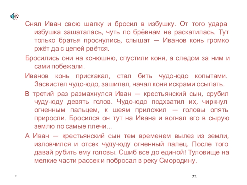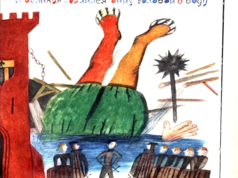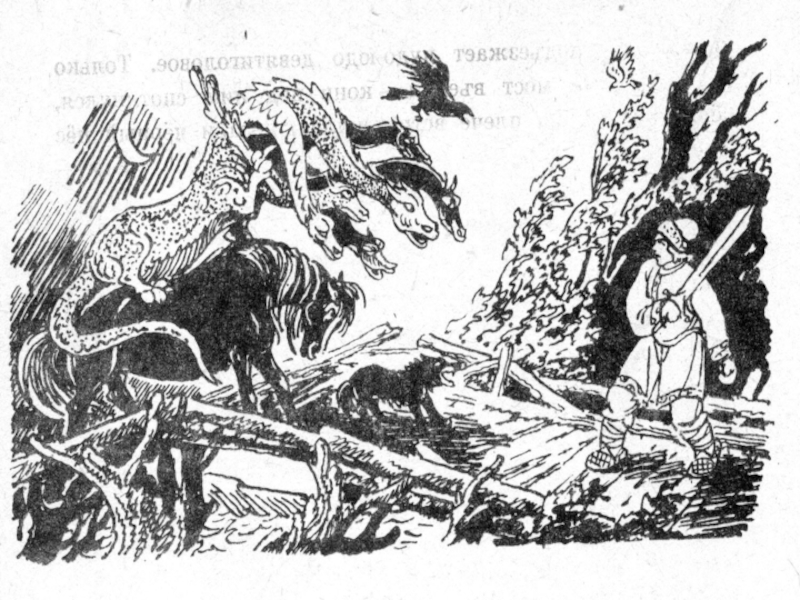 — Ну хозяин мой молодой,— говорит пятиногий скакун,— теперь можем смело домой ворочаться. Дракона девятиглавого бояться нечего.