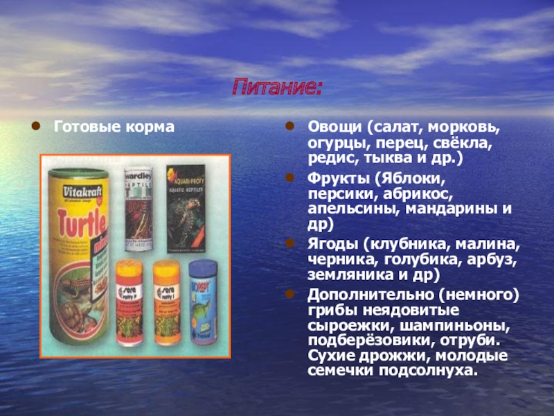 У черепах имеются свои предпочтения в еде. Другие продукты, рекомендованные для