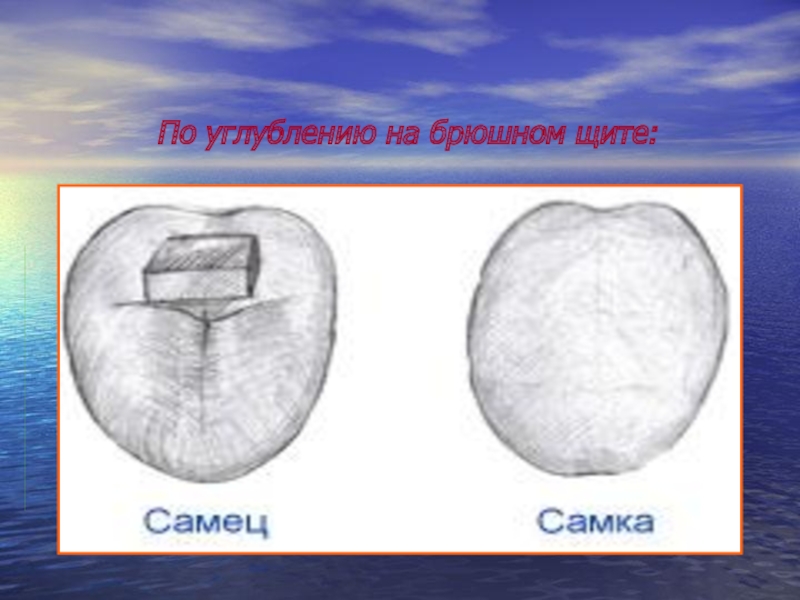 виде треугольника; углубление на брюшном щите отсутствует =это самка.