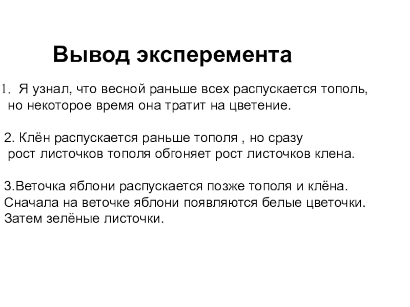 Вывод эксперемента