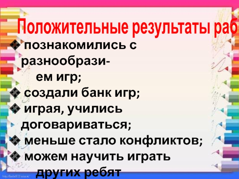 Положительные результаты работы