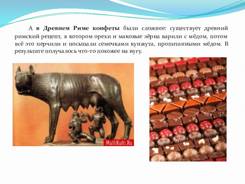 Слайд 5 А в Древнем Риме конфеты были сложнее: существует древний