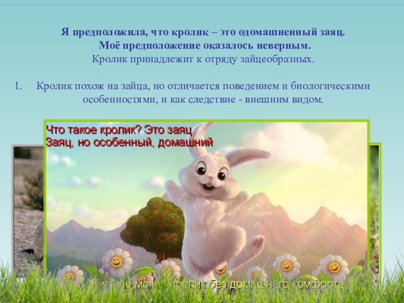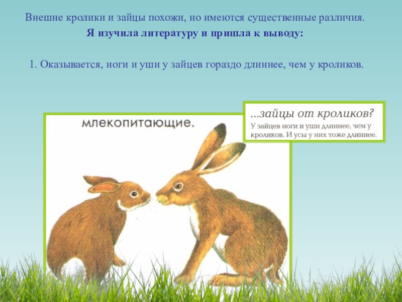 Гипотеза- я предположила, что кролик – это одомашненный заяц.