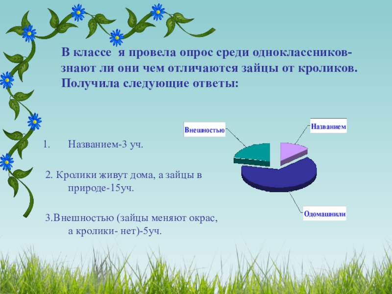 В классе я провела опрос среди одноклассников- знают ли они чем отличаются зайцы от кроликов. Получила следующие ответы: