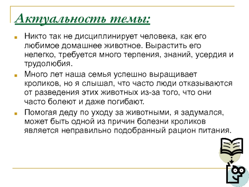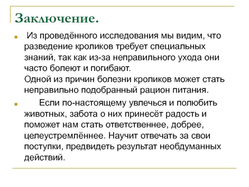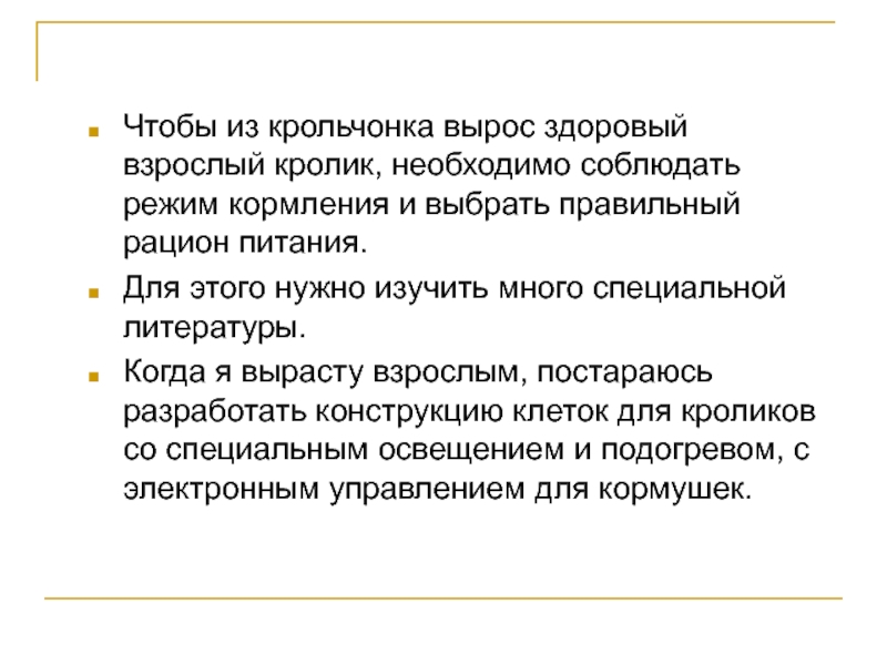 Слайд 21Ухаживая за кроликами, я убедился, что прежде, чем завести животных нужно