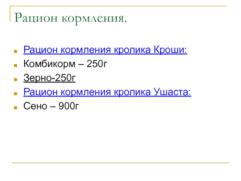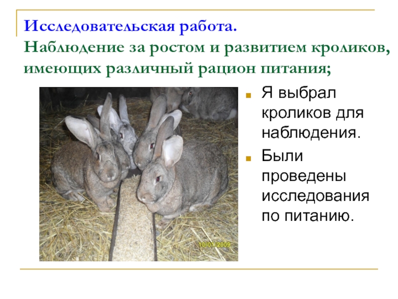Наблюдение за ростом и развитием кроликов, имеющих различный рацион питания;