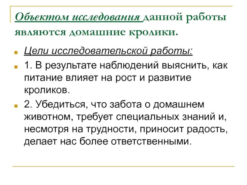 Слайд 3Объектом исследования данной работы являются домашние кролики.