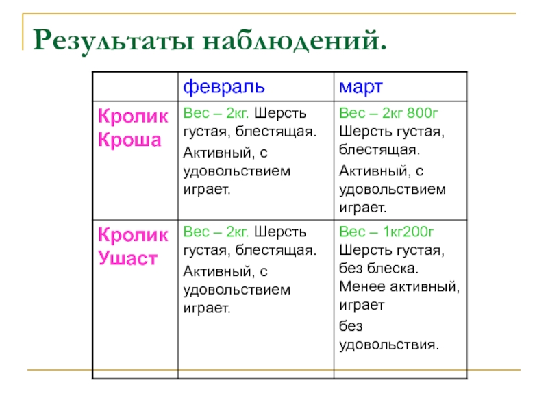наблюдений выяснить, как питание влияет на рост и развитие кроликов.
