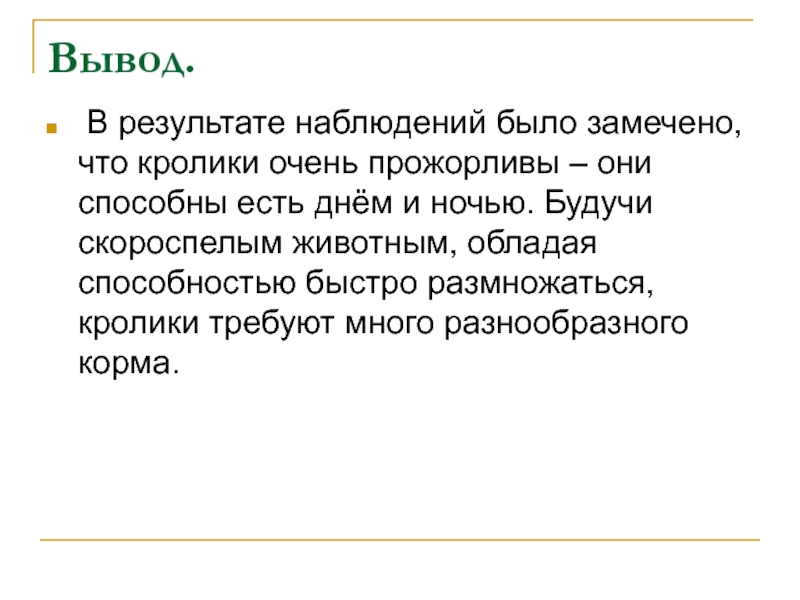 В результате наблюдений было замечено, что кролики очень прожорливы –