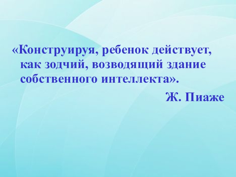 «Конструируя, ребенок действует, как зодчий, возводящий здание собственного интеллекта».