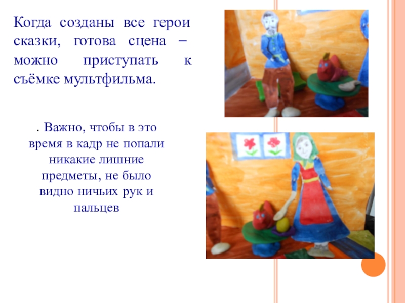 Когда созданы все герои сказки, готова сцена – можно приступать к съёмке мультфильма.