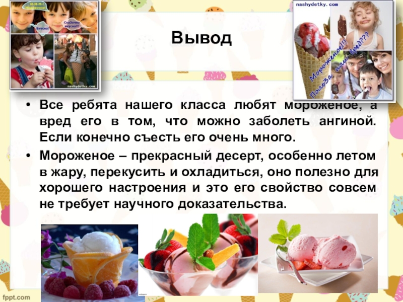 Все ребята нашего класса любят мороженое, а вред его в том,