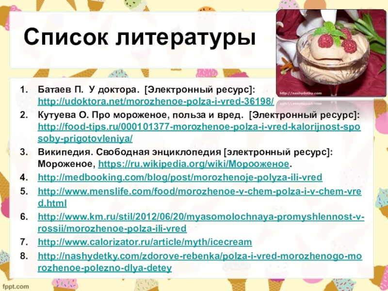 Батаев П. У доктора. [Электронный ресурс]: http://udoktora.net/morozhenoe-polza-i-vred-36198/