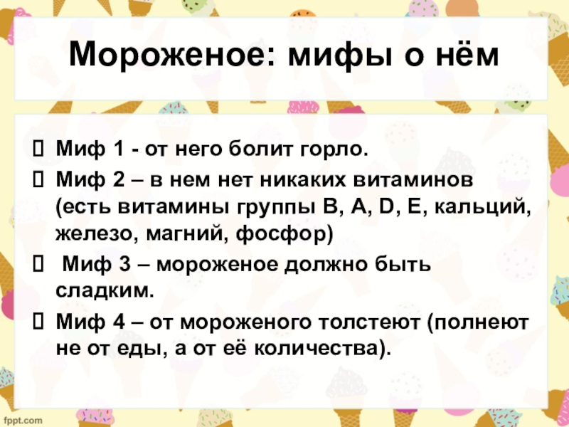 Слайд 10Мороженое: мифы о нём