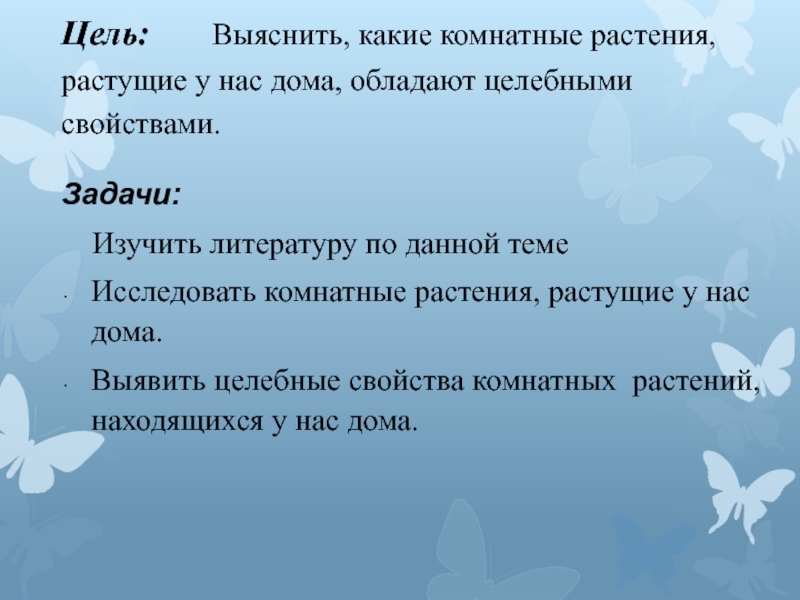 Цель: Выяснить, какие комнатные растения, растущие у