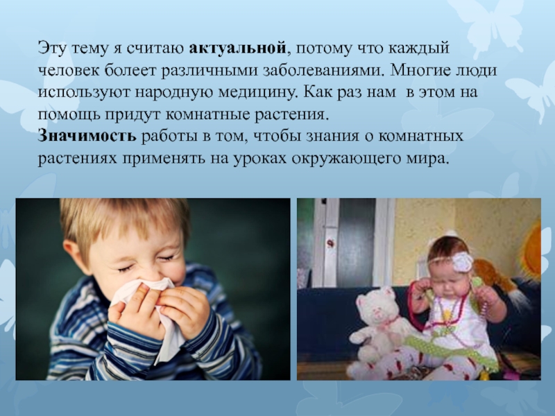 Слайд 8Эту тему я считаю актуальной, потому что каждый человек болеет различными
