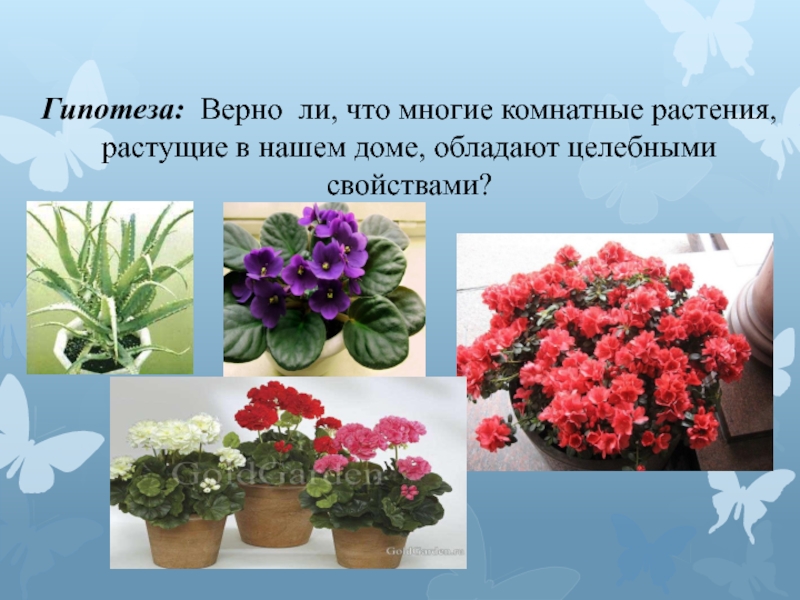 Слайд 5Гипотеза: Верно ли, что многие комнатные растения, растущие в нашем доме,