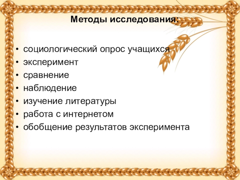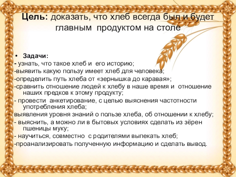 - провести анкетирование, с целью выяснения частотности употребления хлеба;