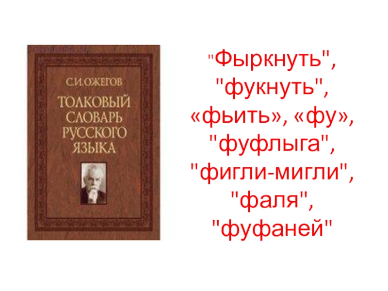 Слайд 19"Фыркнуть", "фукнуть", «фьить», «фу», "фуфлыга", "фигли-мигли", "фаля", "фуфаней"