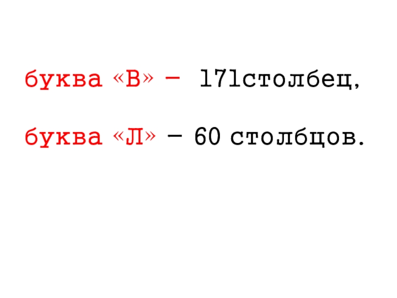 Слайд 17буква «В» - 171столбец,