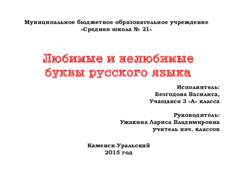 Слайд 1Муниципальное бюджетное образовательное учреждение «Средняя школа № 21»
