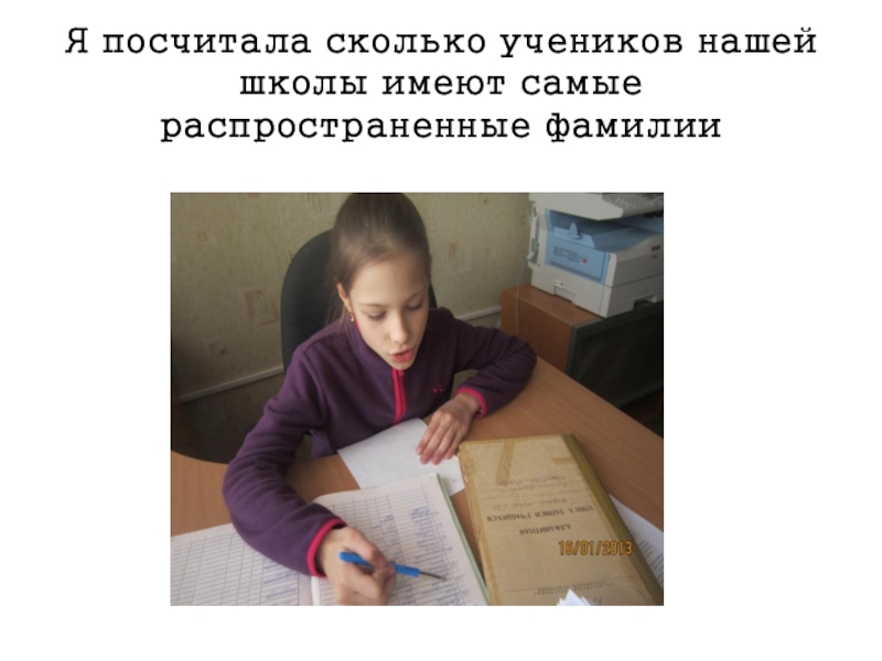 Слайд 26Я посчитала сколько учеников нашей школы имеют самые распространенные фамилии