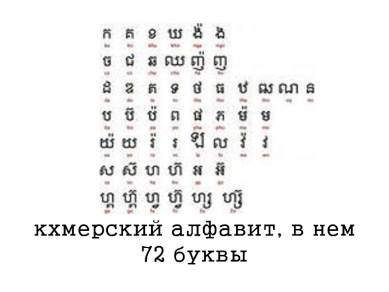 кхмерский алфавит, в нем 72 буквы