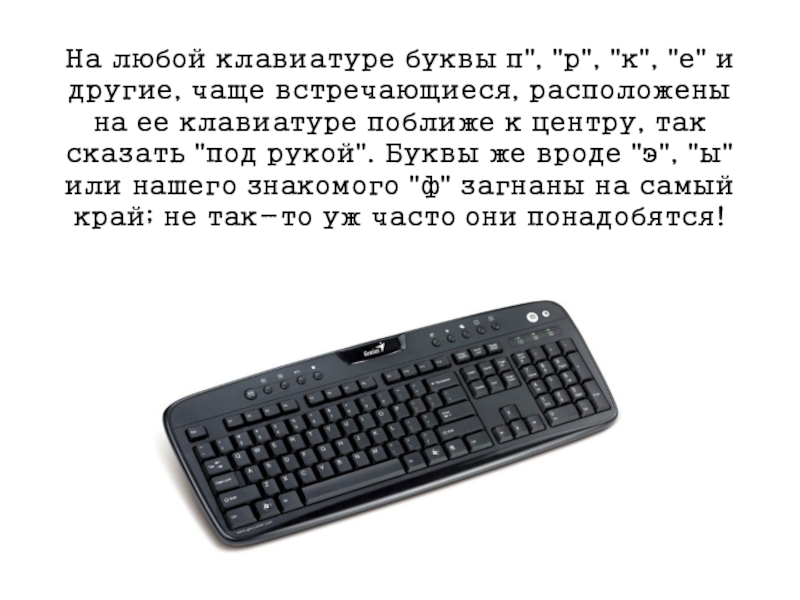 Слайд 25На любой клавиатуре буквы п", "р", "к", "е" и другие, чаще