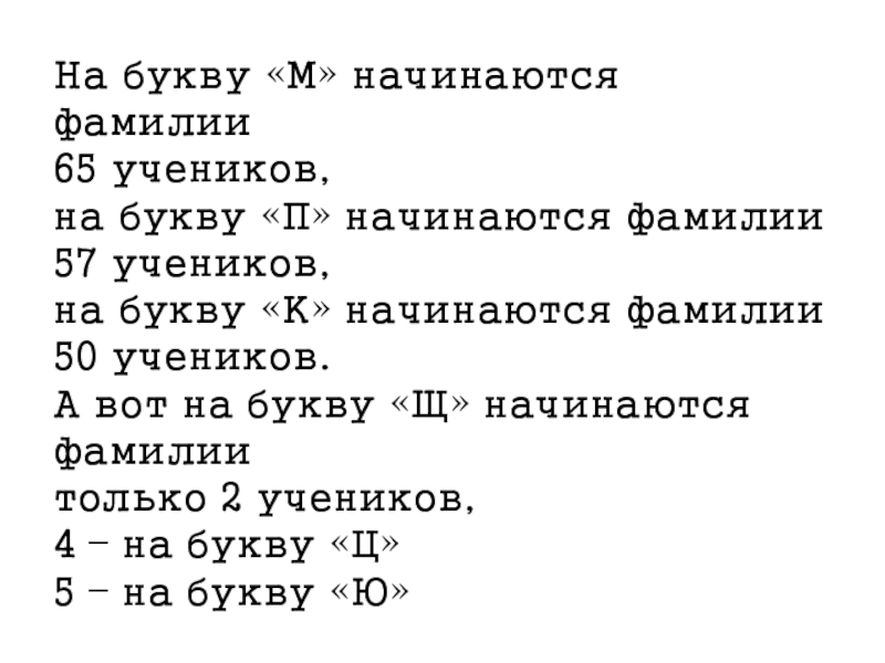 Слайд 27На букву «М» начинаются фамилии