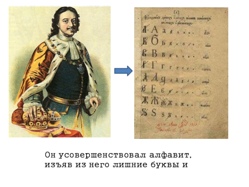 Слайд 12Он усовершенствовал алфавит, изъяв из него лишние буквы и
