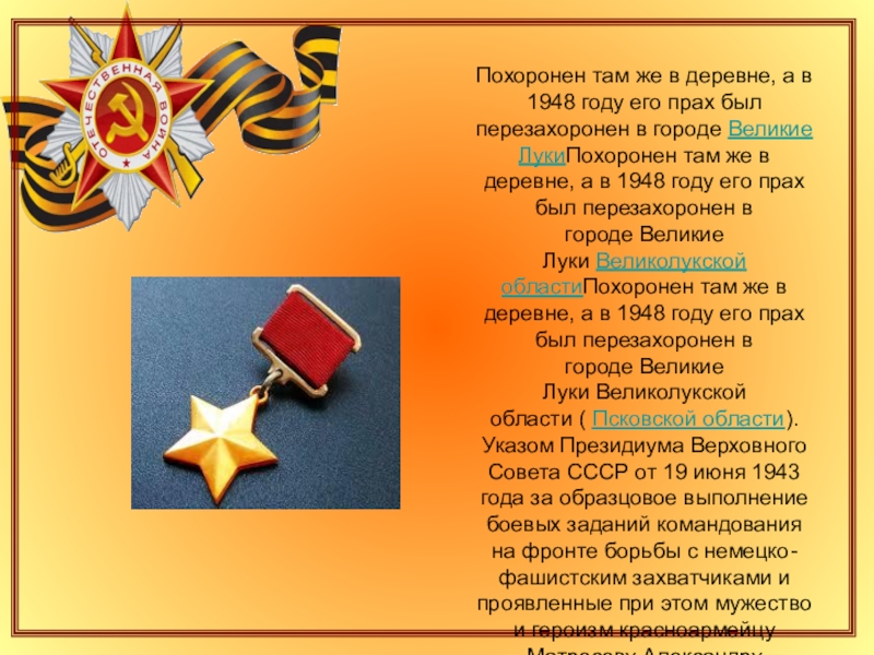ФИЛЬМЫ:«Рядовой Александр Матросов»