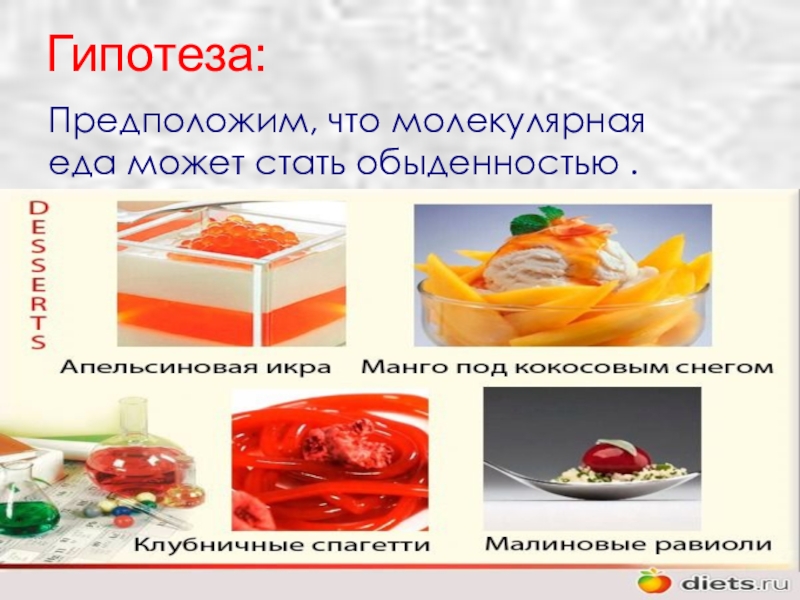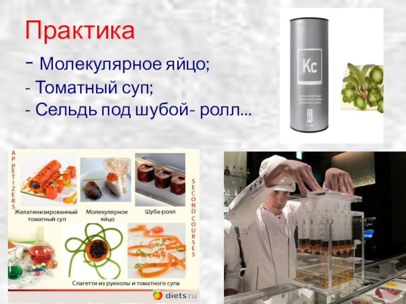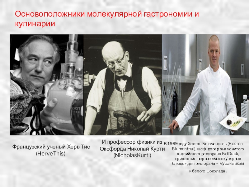 В 1999 году Хестон Блюменталь (Heston Blumenthal), шеф-повар знаменитого английского ресторана FatDuck, приготовил первое «молекулярное блюдо» для ресторана – мусс из икры и белого шоколада.