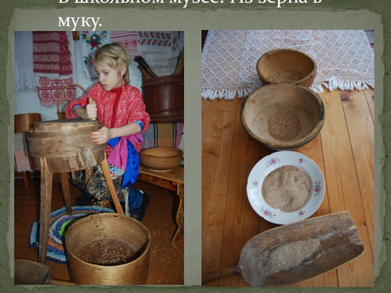 Слайд 13В школьном музее. Из зерна в муку.